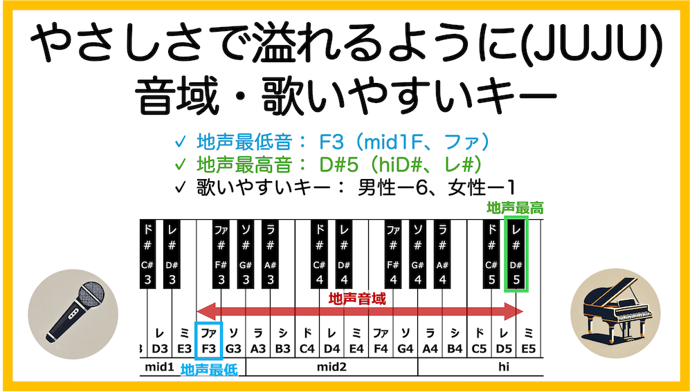 「やさしさで溢れるように」(JUJU)の音域と最適な男女キー -まとめ-